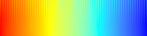 The sine wave used in the linear test image has a wavelength of 8 pixels. On a computer monitor with a nominal pixel pitch of 0.25mm this corresponds to a wavelength of 2mm. With a monitor viewing distance of 600mm this corresponds to 0.19 degrees of viewing angle or approximately 5.2 cycles per degree. This falls within the range of spatial frequencies (3-7 cycles per degree) at which most people have maximal contrast sensitivity to a sine wave grating. This point of maximal sensitivity will depend of the viewing conditions, in particular the mean luminance of the stimulus (Olzak and Thomas 1986; Van Nes and Bouman 1967). A wavelength of 8 pixels is also sufficient to provide a reasonable discrete representation of a sine wave. The aim is to present a stimulus that is well matched to the performance of the human visual system so that what we are primarily evaluating is the colour map's perceptual contrast and not the visual performance of the viewer.